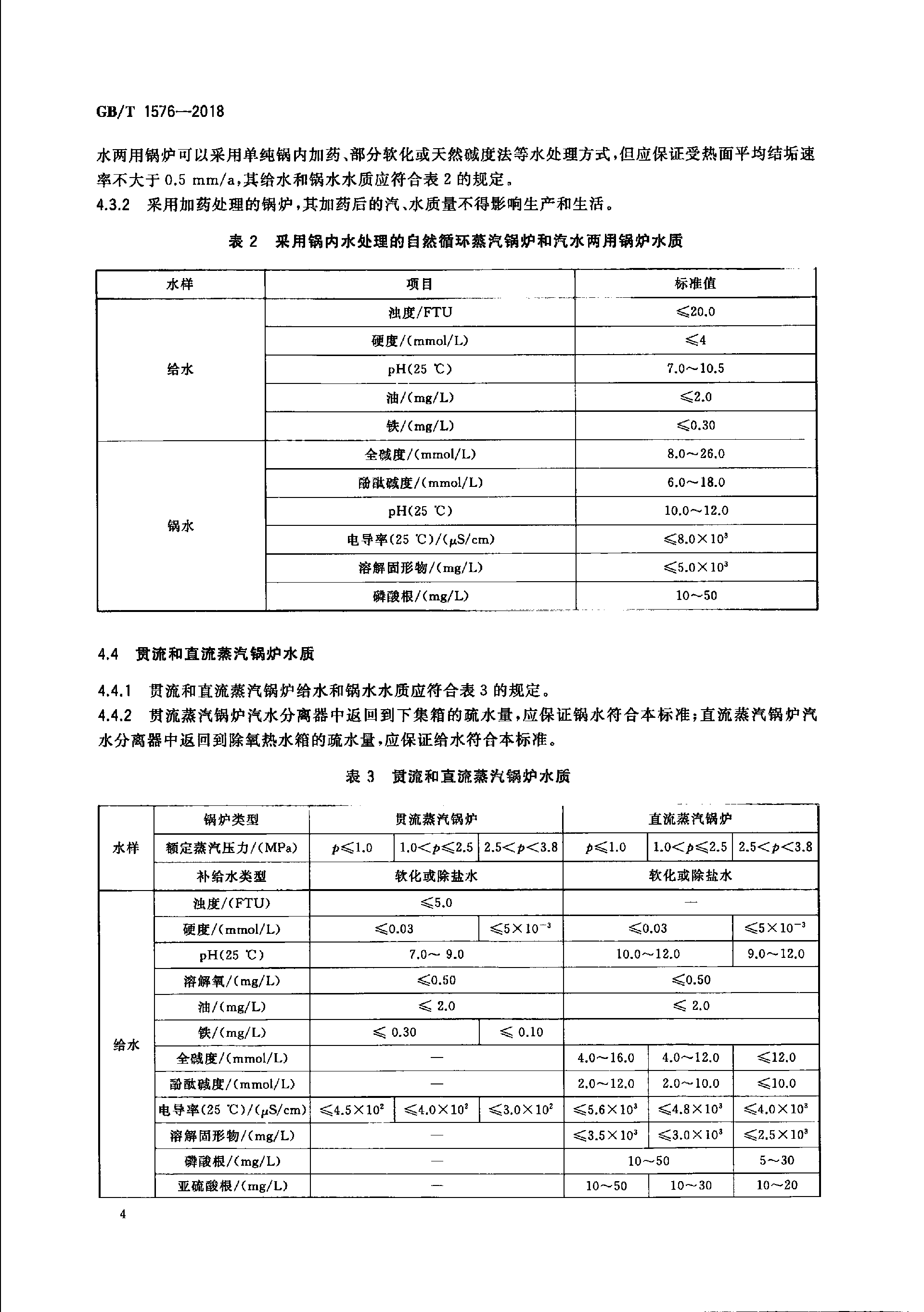 工業鍋爐水質標準GB/T 1576-2018 代替 GB/T 1576-2008